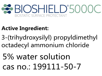 BioShield 5000 C (5% cas 199111-50-7) is an aqueous solution of an organosilane active material. It contains no solvents and is not flammable or corrosive. It is extremely durable and remains effective up to 90 days.